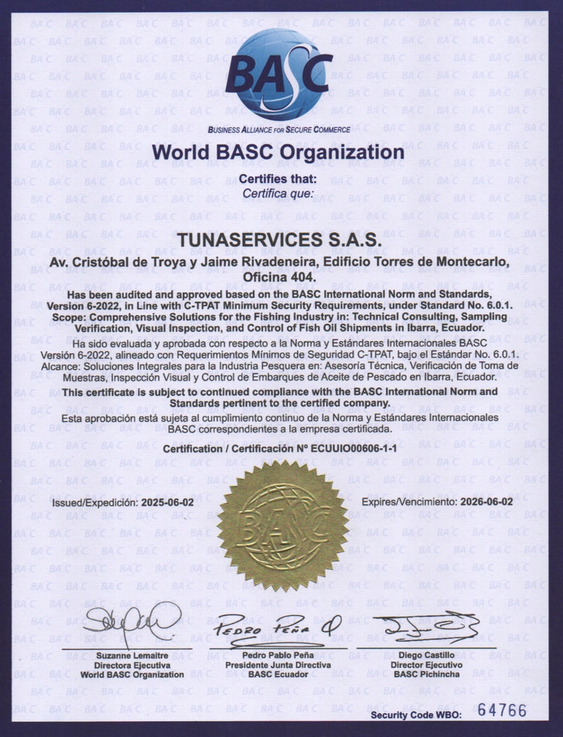En TunaServices, somos expertos en brindar soluciones integrales para la industria pesquera. Nuestros servicios incluyen desde la habilitación documental, agilizando el proceso con informes del progreso a tiempo, asesoramiento técnico a proveedores, inspección visual de mercancías y actividades, supervisión de carga y llenado de contenedores, inspección de cantidad, comprobación de mercancías, testificación de pruebas, realización de toma de muestras en fábrica , verificación de documentación, inspección del proceso de llenado y sellado de contenedores, pruebas de aceptación del cliente. Para lo cual contamos con un equipo altamente capacitado y equipamiento de vanguardia para garantizar la calidad y seguridad en cada paso del proceso.